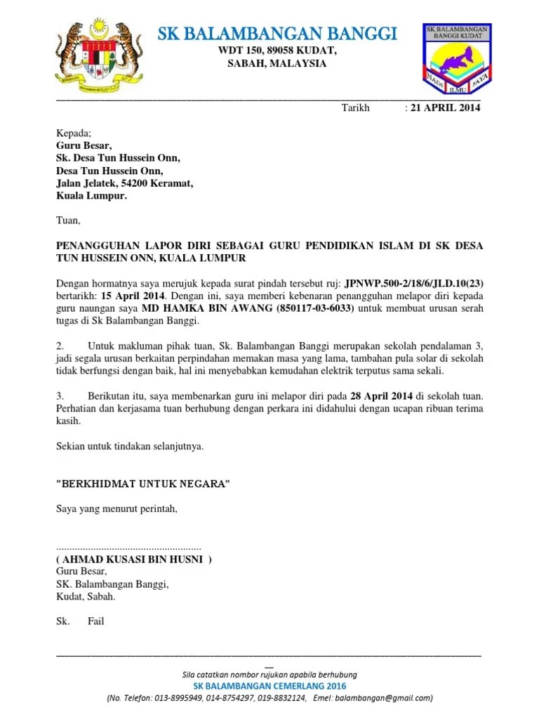 7/18/2019 contoh surat penangguhan lapor diri 1/3contoh surat penangguhan lapor diri(kepadaketua jabatan yang baharu)tuan,pemberitahu pertukaran (nama . Berdasarkan surat penempatan pertukaran dari jpn selangor dengan . Bersama sama surat penangguhan saya ini, saya lampirkan surat penerimaan jawatan.